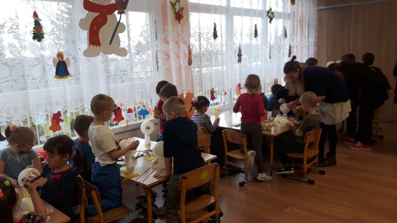 Przedszkolaki lubią zimę, święta, choinkę i lubią śpiewać kolędy. Odwiedziliśmy je z świątecznymi animacjami i warsztatami plastycznymi.Robiliśmy pięknego anioła,pluszowa krowa opowiadała historię o pierwszej gwiazdce.Dzieci tańczyły, śpiewały i świetnie się bawiły.